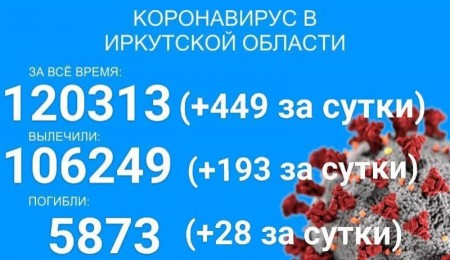 В Иркутской области, по данным регионального оперштаба на 27 октября, официально зарегистрировано 120313 подтверждённых тестами ПЦР случаев заражения коронавирусом. Суточный прирост составил 449 новых случаев.