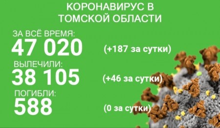 В Томской области по состоянию на 27 октября коронавирус выявлен у 47 020 человек. За сутки заболевание диагностировали у 187 человек. С начала эпидемии излечились 38 105 человек. 46 пациентов выздоровели за сутки с 26 по 27 октября.