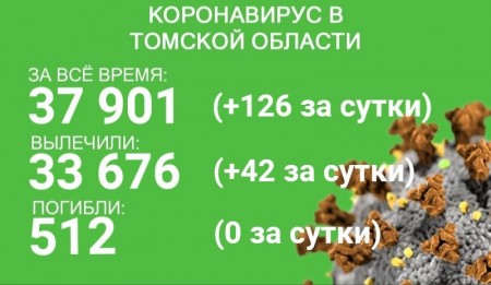 В Томской области по состоянию на 6 августа зарегистрирован 37 901 случай новой коронавирусной инфекции. У 126 жителей COVID-19 выявили в минувшие сутки. За время эпидемии выздоровели 33 676 человек, 42 из них – в последние сутки.