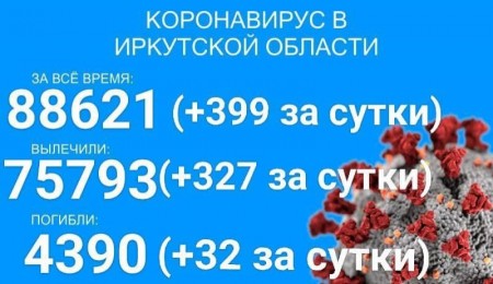По данным оперштаба Иркутской области на 7 августа, в регионе зарегистрирован 88621 официально подтверждённый тестами ПЦР случай заражения коронавирусом. Прирост за сутки составил 399 человек. 4059 пациентов находится в ковидных стационарах. За сутки их количество снизилось на 206 человек.
