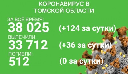 В Томской области за сутки с 6 по 7 августа коронавирус зарегистрирован у 124 человек. За весь период заболевание выявлено у 38 025 человек. В минувшие сутки выздоровели 36 пациентов. За все время эпидемии излечились 33 712 человек.