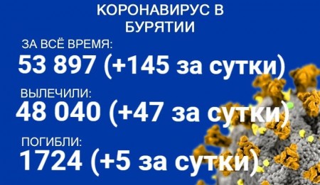 По данным на 8 августа, еще 145 человек в Бурятии заболели COVID-19. Также за сутки 47 пациентов выздоровели, пятеро скончались. Об этом сообщает пресс-служба регионального Роспотребнадзора. В настоящее время лечение в стационарах проходят 725 человек с коронавирусом и подозрением на него.