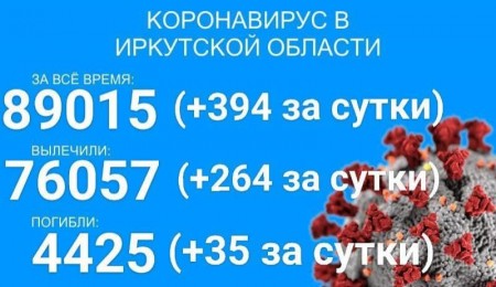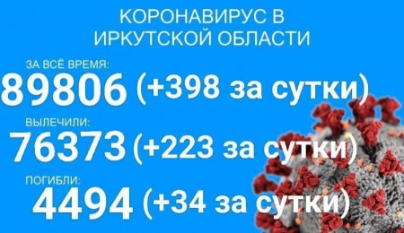 По данным иркутского областного оперштаба, в регионе на утро 10 августа зарегистрировано 89806 официально подтверждённых тестами ПЦР случаев заболевания коронавирусом. За сутки было выявлено 398 новых случаев, пять из них - вахтовики, 45 - дети до 17 лет.
