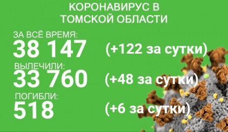 В Томской области за сутки с 7 по 8 августа коронавирус зарегистрирован у 122 человек. Всего в регионе выявлено 38 147 случаев новой коронавирусной инфекции. В минувшие сутки выздоровели 48 пациентов. За время эпидемии излечились 33 760 человек.