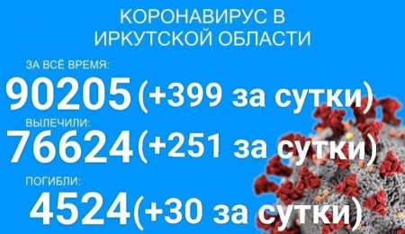 По данным иркутского регионального оперштаба, в Прибайкалье на утро 11 августа зарегистрировано 90205 официально подтверждённых тестами ПЦР случаев заболевания коронавирусом. Прирост за сутки составил 399 новых случаев, в том числе четверо вахтовиков и 30 детей до 17 лет.
