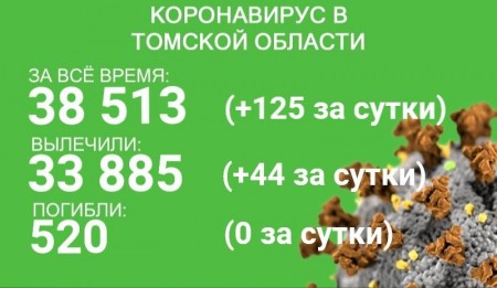 По состоянию на 11 августа в Томской области зарегистрировано 38 513 случаев коронавируса. У 125 человек из этого количества заболевание выявлено за минувшие сутки. За сутки с 10 по 11 августа выздоровели 44 пациента. С начала эпидемии излечились 33 885 человек.