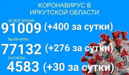 По данным оперштаба Иркутской области на утро 13 августа, в регионе зарегистрировано 91009 официально подтверждённых тестами ПЦР случаев заболевания коронавирусом. Прирост за сутки составил 400 вновь заболевших, 33 из которых - дети до 17 лет.