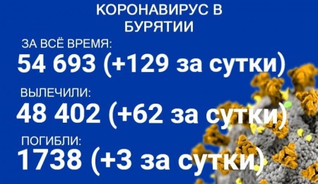 По данным на 14 августа, еще 129 человек в Бурятии заболели COVID-19. Также за сутки 62 пациента выздоровели, трое скончались. Об этом сообщает пресс-служба регионального Роспотребнадзора. В настоящее время лечение в стационарах проходят 556 человек с коронавирусом и подозрением на него.