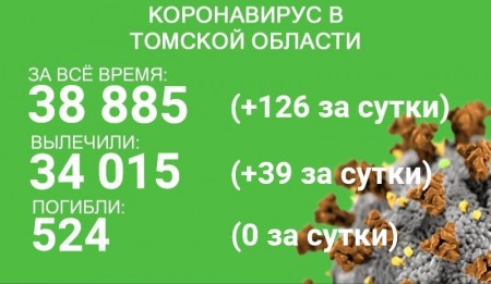 По состоянию на 14 августа в Томской области зарегистрировано 38 885 случаев новой коронавирусной инфекции. 126 из них выявлены в минувшие сутки. За время эпидемии излечились 34 015 человек. 39 пациентов выздоровели в минувшие сутки.