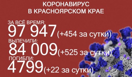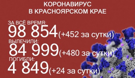 17 августа число ковидных смертей в Красноярском крае достигло 4849, за последние сутки скончались 24 больных коронавирусом. За сутки выявили ещё 452 заболевших. За всё время пандемии COVID-19 выявили у 98 854 жителей края. Выздоровело 84 999 человек, в том числе 480 за последние сутки.