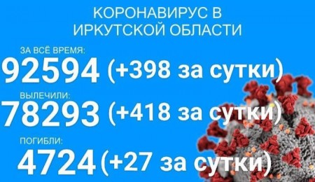 По данным оперштаба Иркутской области на утро 17 августа, в регионе зарегистрировано 92594 официально подтверждённых тестами ПЦР случая заболевания коронавирусом. За сутки было выявлено 398 новых случаев, в том числе двое вахтовиков и 28 детей до 17 лет.