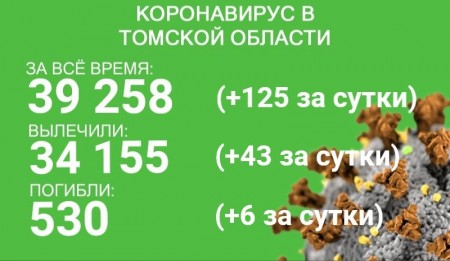 В Томской области за сутки с 16 по 17 августа зарегистрировано 125 случаев новой коронавирусной инфекции. С начала эпидемии COVID-19 выявлен у 39 258 человек. В минувшие сутки выздоровели 43 пациента. Всего излечились 34 155 человек.