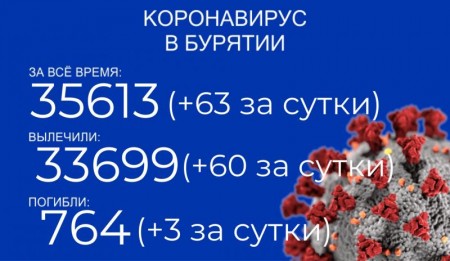 За сутки в регионе коронавирус подтвердился у 63 человек, трое скончались, общее число погибших — 764 человека. По данным Роспотребнадзора на утро 23 марта, всего в республике подтверждены 35613 случаев заражения COVID-19. Из них в Улан-Удэ — 18872 случая, это 54% от общего числа инфицированных.