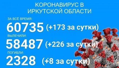 В Иркутской области, по данным на утро 25 марта, зарегистрировано 60735 официально подтверждённых случаев заболевания коронавирусом. За сутки выявили 173 новых случая, в том числе семь вахтовиков и 11 детей до 17 лет. Об этом сообщает региональный оперштаб.