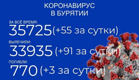 К восьми часам утра 25 марта в Бурятии зарегистрировано 35 725 лабораторно подтвержденных случаев заражения COVID-19. 55 из них – за минувшие сутки: 44 человека обратились к врачу в связи с ОРВИ и пневмонией, 11 – контактные лица, обследование которых проводилось с профилактической целью.
