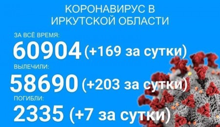 В Иркутской области, по данным на утро 26 марта, зарегистрировано 60904 официально подтверждённых случая заболевания коронавирусом. За сутки заразилось ещё 169 человек, 11 из них – дети до 17 лет, сообщает региональный оперштаб.