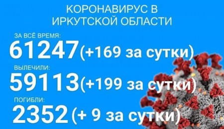 В Иркутской области, по данным на утро 28 марта, зарегистрировано 61247 официально подтверждённых случаев заражения коронавирусом. Прирост за сутки составил 169 новых случаев, сообщает региональный оперштаб. 1534 человека лечится в больницах.