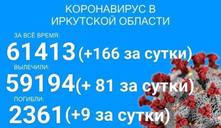 По данным на утро 29 марта в Иркутской области зарегистрировано 61413 официально подтверждённых случаев заболевания коронавирусом. За сутки выявили 166 новых случаев, двое из которых вахтовики, девять – дети до 17 лет. Об этом сообщает региональный оперштаб.