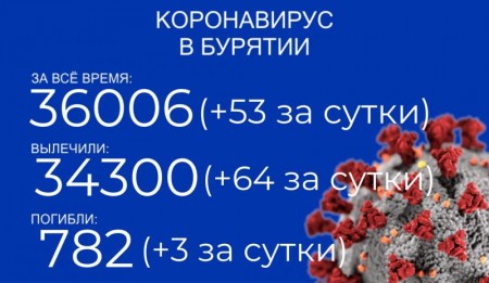 За сутки в регионе коронавирус подтвердился у 53 человек, 64 выздоровели, трое скончались. По данным Роспотребнадзора на утро 30 марта, всего в республике подтверждены 36006 случаев заражения COVID-19. Из них в Улан-Удэ — 19087 случаев, это 54% от общего числа инфицированных.