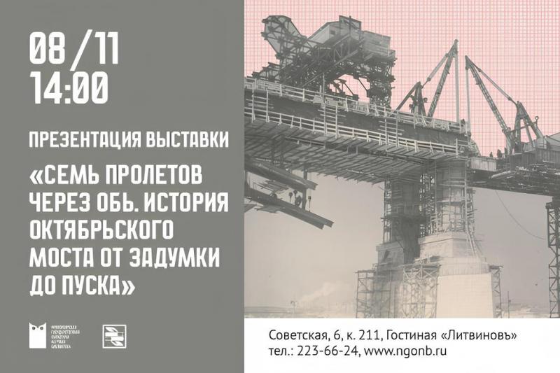 В субботу Новосибирская государственная областная научная библиотека проведёт презентацию выставки «Семь пролётов через Обь. История Октябрьского моста от задумки до пуска».