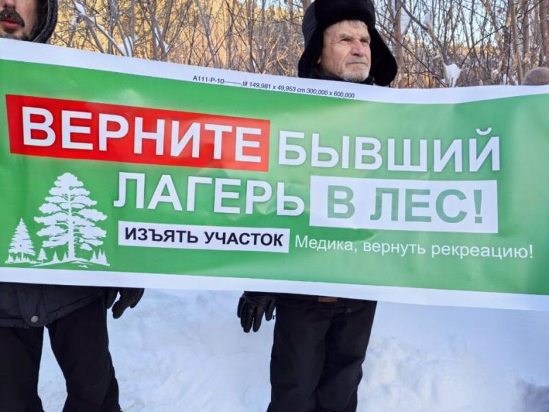 Большая часть присутствующих протестовала против застройки территории бывшего лагеря «Юный медик», которую несколько раз перепродавали. Жители микрорайона не хотели вырубки лесной зоны ради строительства зданий в 15 этажей.