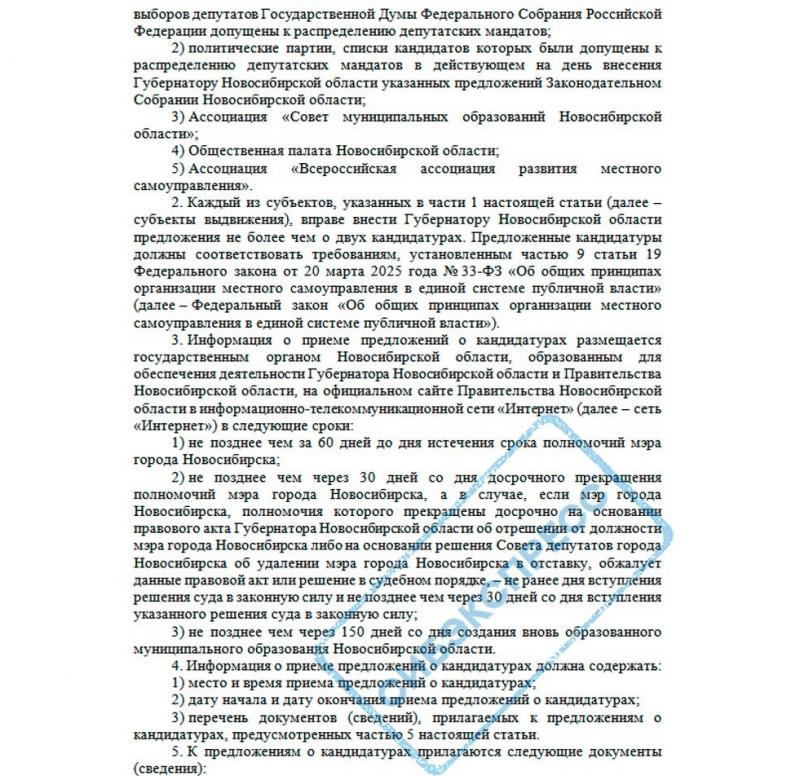 Сессия областного парламента 29 января 2026 года прошла предсказуемо. Подконтрольное «Единой России» большинство без лишних вопросов приняло законопроект, который фактически ставит крест на остатках местного самоуправления. За инициативу губернатора Травникова проголосовали 59 депутатов, против высказались лишь четверо, а ещё шестеро предпочли деликатно воздержаться. Суть документа проста и неприятна: теперь мэра Новосибирска будет выбирать горсовет, но только из тех кандидатур, которые предоставит лично глава региона. При этом губернатор обязан вынести на обсуждение не менее двух человек, но выбирать их он будет не из народа.