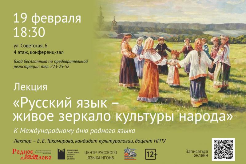 Мероприятие приурочено к Международному дню родного языка. Лектором станет кандидат культурологии, доцент НГПУ Елена Тихомирова, которая расскажет о взаимосвязи языка и культуры, его влиянии на мышление и восприятие мира. Лекция будет интересна старшеклассникам, студентам и всем взрослым, желающим взглянуть на родную речь с новой стороны.