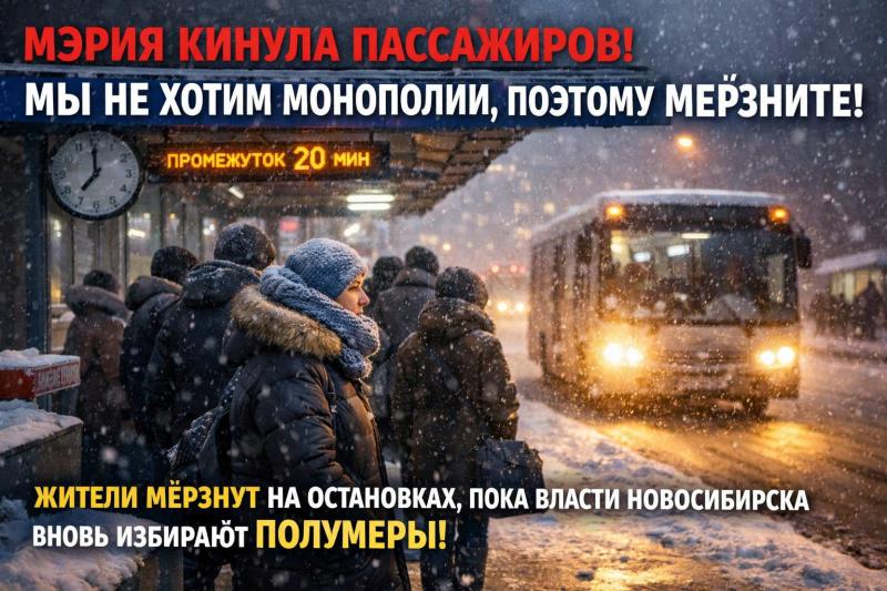 Жители мёрзнут на остановках и не могут вовремя добраться до работы, а власти Новосибирска тем временем сообщают, что не хотят монополизировать рынок общественного транспорта. В действительности же у мэрии просто нет денег на подобную задумку.