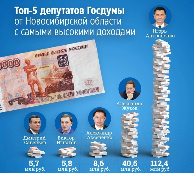 Среди всех депутатов Государственной думы от Новосибирской области единоросс Игорь Антропенко в 2021 году стал самым богатым. Депутат возглавил список, так как всего за год заработал более 112 миллионов рублей. Можно предположить, что в 2025 году Антропенко мог поднять сумму до 200 миллионов (если не больше), но знать наверняка мы не можем, так как с 2021 года декларации о доходах депутатов скрывают от общественности. В 2020 году депутат задекларировал доход в 38,2 миллиона рублей, что в три раза меньше,ч ем в 2021.
