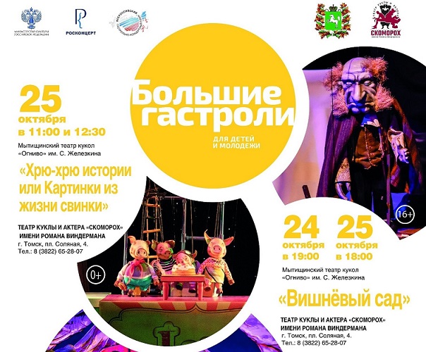 В Томск в рамках федеральной программы «Большие гастроли» приедет Мытищинский театр кукол «Огниво» имени С. Железкина. На сцене томского театра куклы и актёра «Скоморох» имени Романа Виндермана актеры театра из подмосковных Мытищ покажут три постановки.