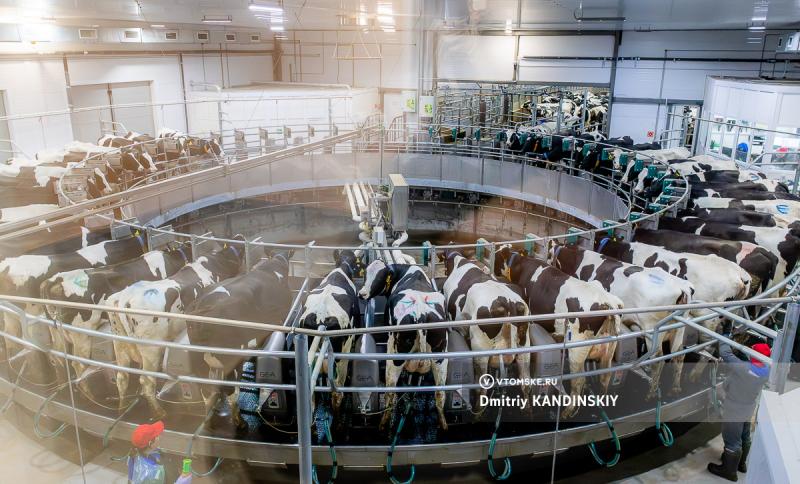 Факты выглядят, конечно, красиво. Новый комплекс ООО «Большедороховское молоко» (ОГРН 1227000007189), входящий в «Холдинг Молоко» (ОГРН 1227000006848) Новожилова, обошёлся в 2,8 миллиарда рублей. На ферму завезли 1999 элитных коров голштино-фризской породы. После выхода на проектную мощность они будут давать 22 тысячи тонн молока в год — 64 тонны в сутки. Для понимания: это примерно пятая часть всего товарного объёма в регионе. Комплекс хорошо оснащён: он включает автоматический доильный зал карусельного типа и собственный кормоцентр.