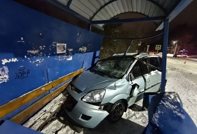 После наезда на подростка иномарка продолжила движение и врезалась в остановочный комплекс. Большая удача, что на остановке не было людей.